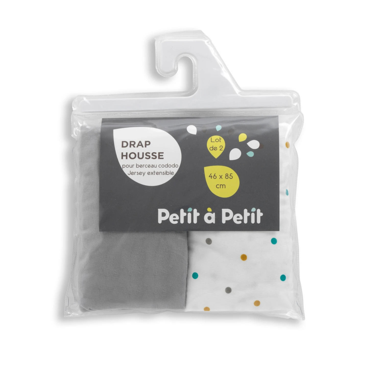 Un lot de 2 draps housses Petit à Petit, adaptés aux Berceaux Cododo Maika.