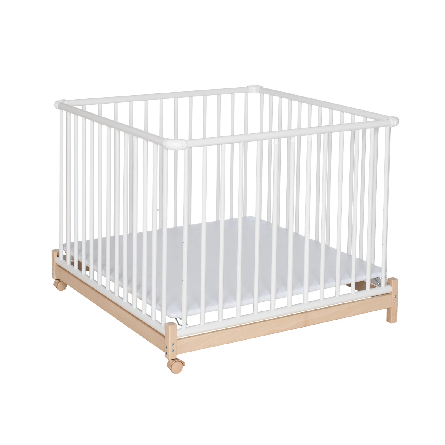 - 3 barreaux amovibles permettent à l’enfant, lorsqu’il grandit, de faire de son parc une aire de jeux d’où il peut rentrer et sortir comme il le souhaite