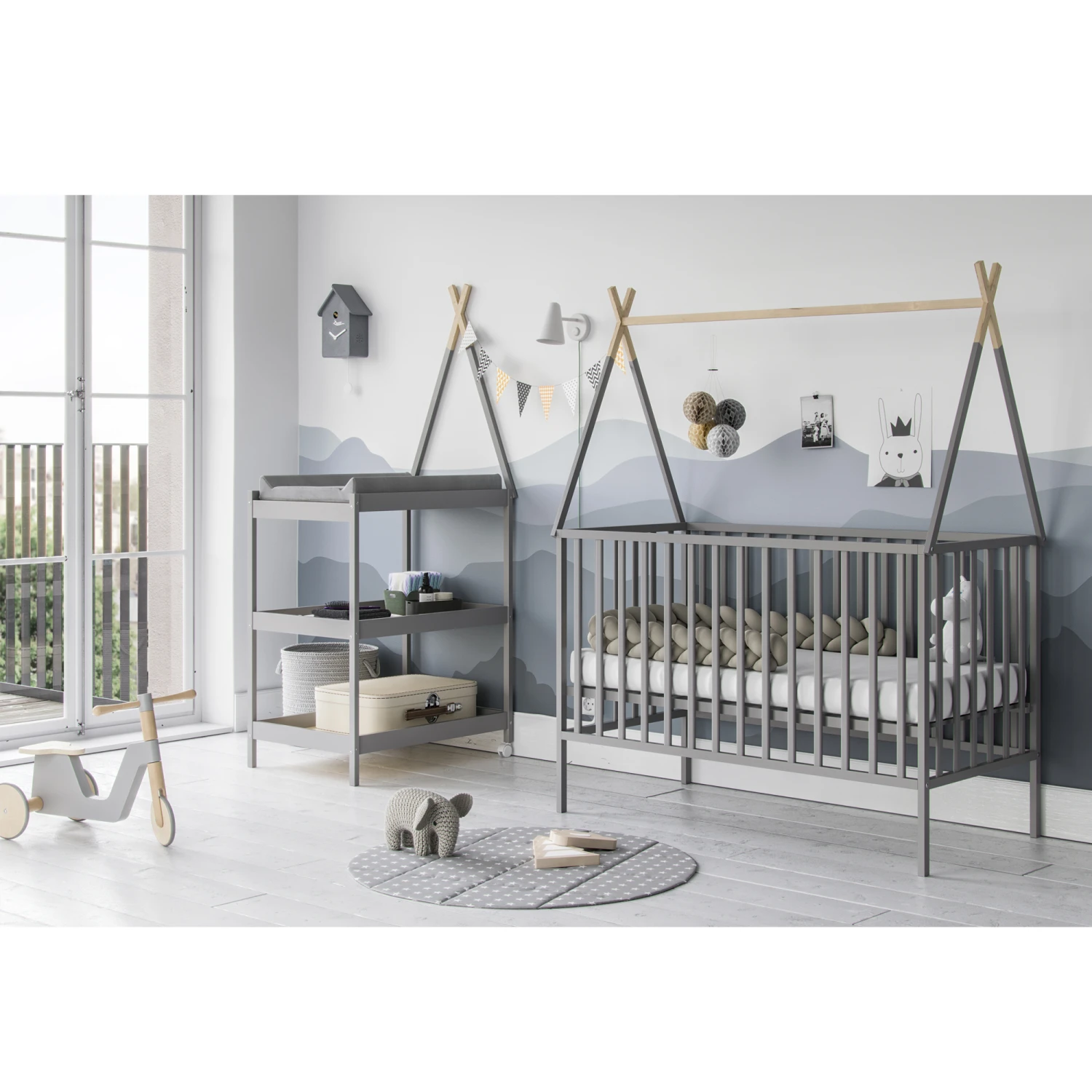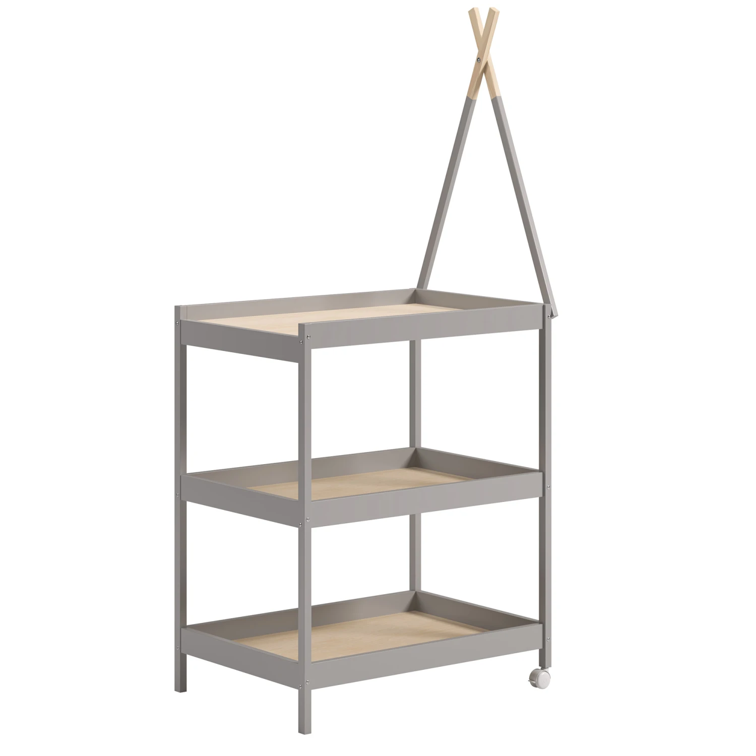 Conçue en hêtre massif de haute qualité, la table à langer Peak de la marque Vox est disponible en deux coloris : gris clair et blanc. La table à langer possède deux roulettes gràce auxquelles vous pouvez la déplacer facilement et changer votre bébé en toute sécurité. Ses deux étagères de rangement offrent beaucoup de place pour tout le nécessaire de votre enfant.