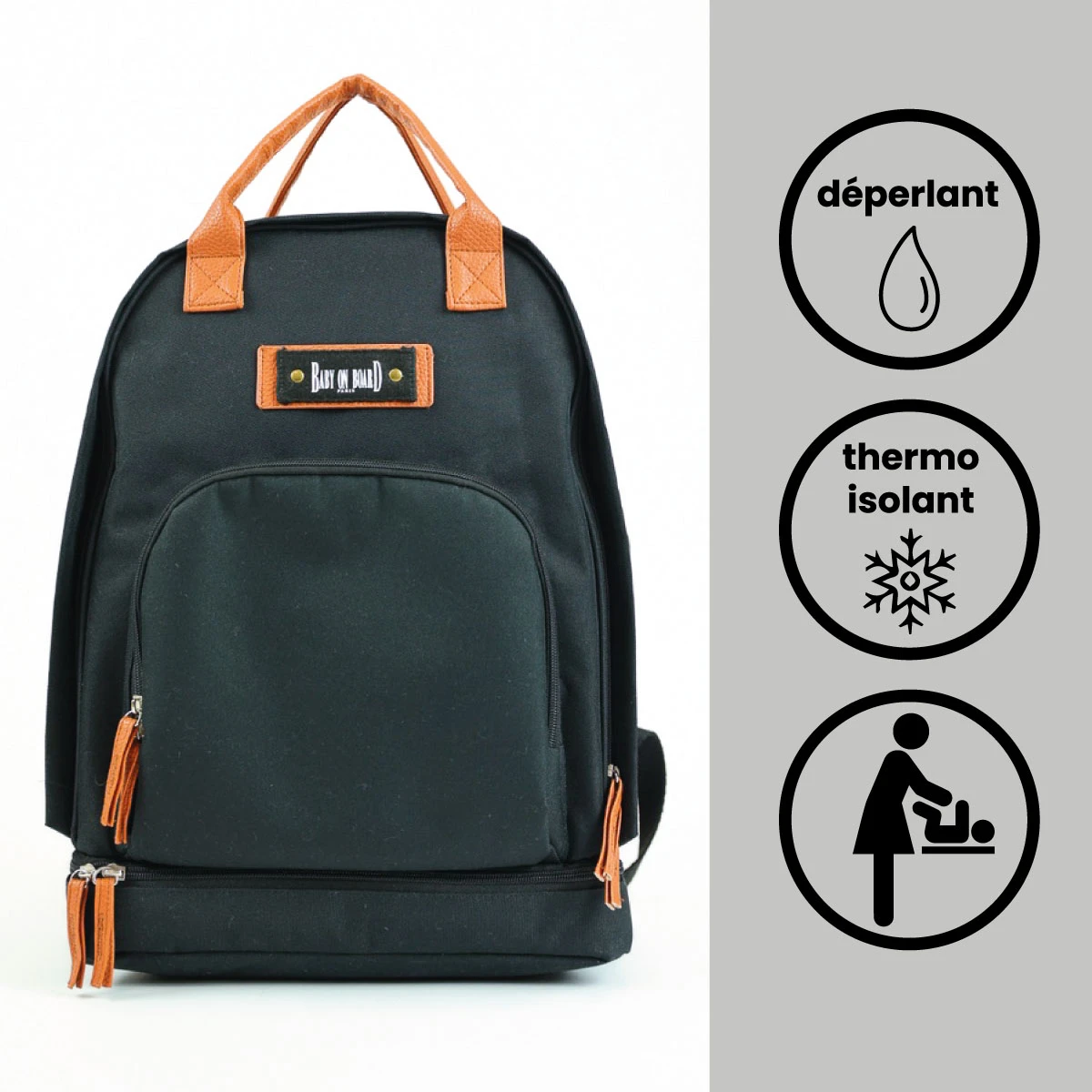 C’est un sac à dos unique qui rend les déplacements “zen”… ACCESSIBILITÉ est son maître mot ! Ses 3 compartiments s’ouvrent en grand sur des volumes généreux, compartiments bien logeables et structurés, larges ouvertures par double glissière et multiples poches, tout a été pensé et testé “in situ” pendant de longs voyages… vous pouvez lui faire confiance ! Il a de l’expérience … Avec une ouverture totale du compartiment principal , l’accès aux nombreux rangements intérieurs est immédiat ! on y trouve tout en un clin d’oeil , pas besoin de “farfouiller” à l’aveugle … Sur l’avant du sac, le compartiment repas est thermo isolant, il contient un repas entier et lui aussi, s’ouvre en grand par double glissière. Idem pour l’extension zippée à la base du sac .. ce compartiment est dédié aux changes, on y stocke environ 4 à 6 changes et on peut y isoler le linge sali